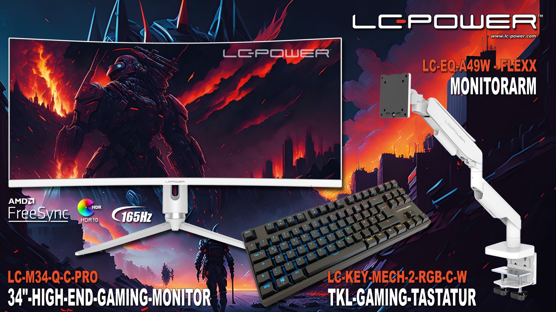 Um dein Gaming-Erlebnis perfekt zu machen, gibt es obendrein noch den Monitorarm "LC-EQ-A49W" und die TKL-Gaming-Tastatur "LC-KEY-MECH-2-RGB-C-W" dazu. Nimm jetzt am Gewinnspiel teil und erhalte die Chance auf ein verfrühtes Weihnachtsgeschenk von LC-Power im Wert von 563 € !