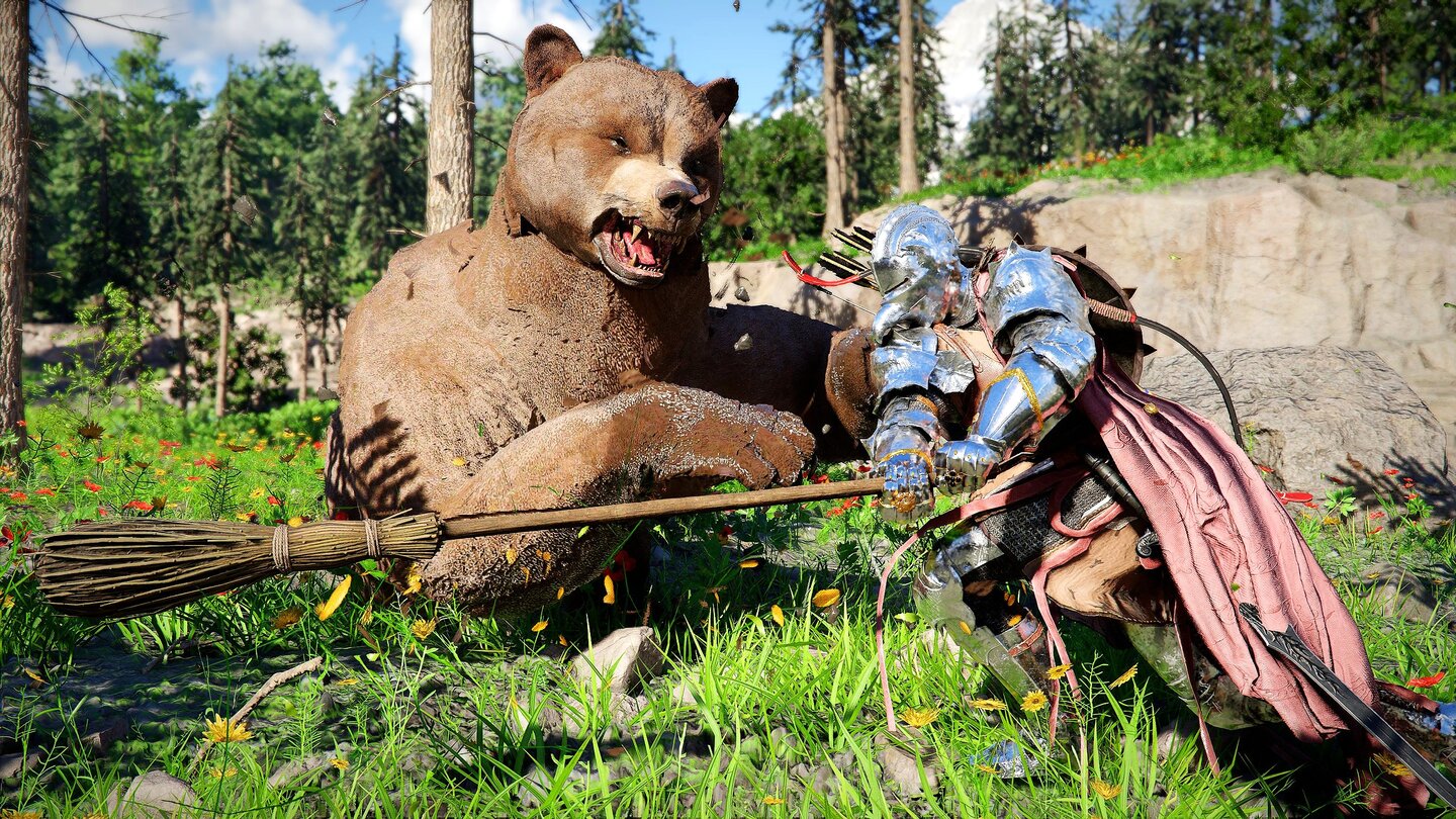 Läuft gerade Crimson Desert: Wir besiegen einen Bär, und zwar mit einem Besen!