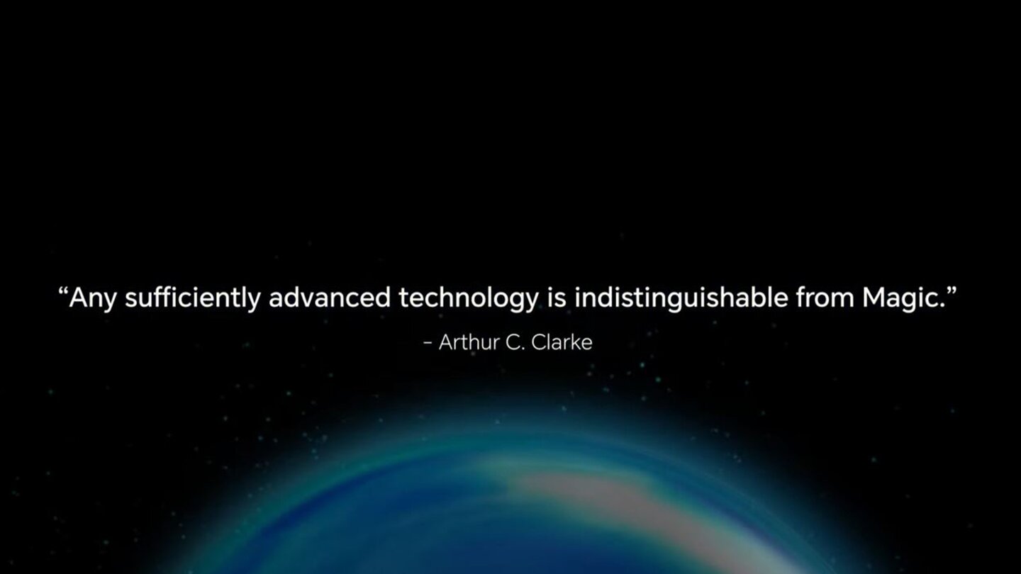 Allerdings wird im Video einer KI die Frage gestellt, wo die Grenzen von Magie liegen und beziehen sich hier auf die fortschreitende technische Entwicklung - wie ihren Smartphones. Statt mit einer Antwort endet das Video mit einem Zitat des britischen Sci-Fi-Autors Arthur C. Clarke:
