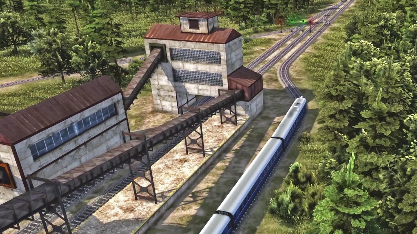 Für den unkommentierten Clip folgen wir mit der Kamera einem unserer Züge, der sich durch die begrünte Landschaft rund um unsere Industrieanlagen schlängelt. Der Aufbau einer funktionierenden Infrastruktur ist im Spiel von größter Wichtigkeit.